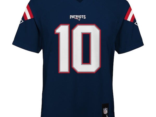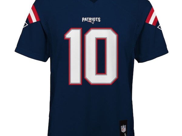 Drake Maye New England Patriots Youth Replica Player Jersey – Navy