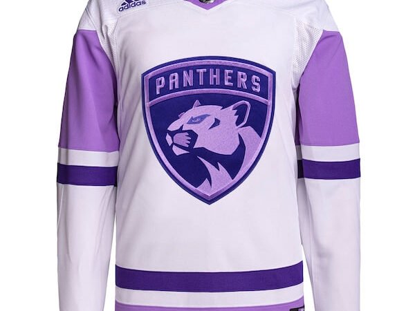 Florida Panthers adidas Hockey Fights Cancer Primegreen Authentic Custom Jersey – White/Purple