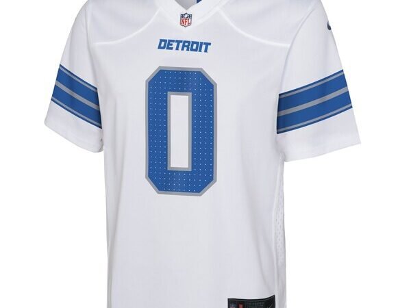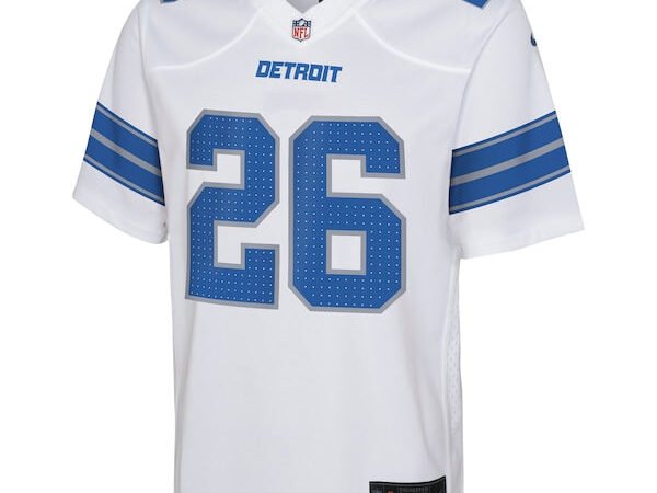 Jahmyr Gibbs Detroit Lions Nike Youth Game Jersey – White/Black/Blue