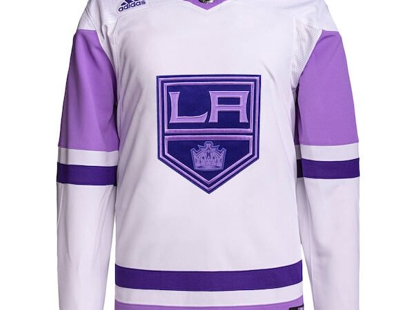 Los Angeles Kings adidas Hockey Fights Cancer Primegreen Authentic Custom Jersey – White/Purple
