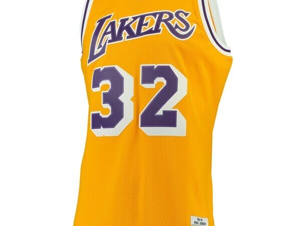 Magic Johnson Los Angeles Lakers 1984/85 Hardwood Classics Fadeaway Swingman Player Jersey – Gold/Purple