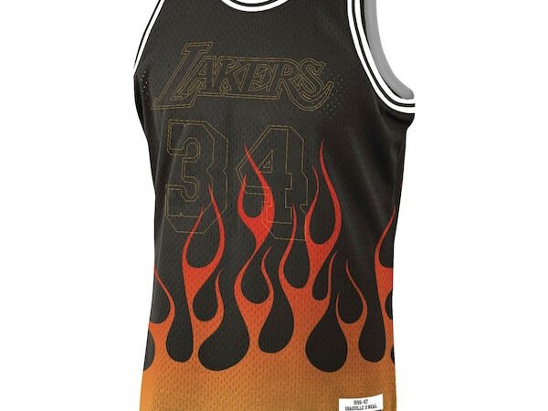 Shaquille O’Neal Los Angeles Lakers 1996-97 Hardwood Classics Flames Swingman Jersey – Black