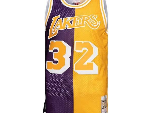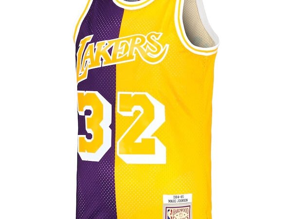 Magic Johnson Los Angeles Lakers Hardwood Classics 1984/85 Split Swingman Jersey – Purple/Gold