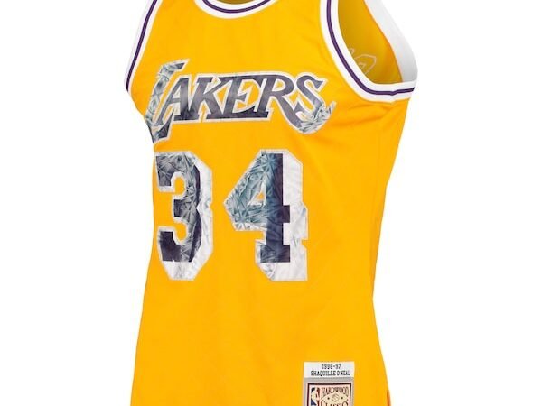 Shaquille O’Neal Los Angeles Lakers 1996-97 Hardwood Classics NBA 75th Anniversary Diamond Swingman Jersey – Gold