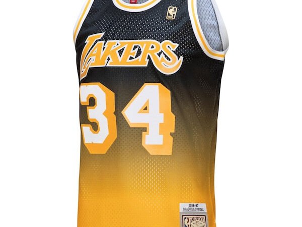 Shaquille O’Neal Los Angeles Lakers 1996/97 Hardwood Classics Fadeaway Swingman Player Jersey – Gold/Black