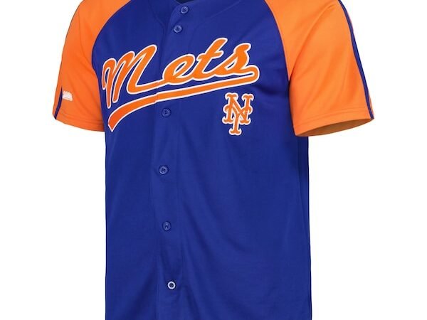New York Mets Stitches Button-Down Raglan Fashion Jersey – Royal