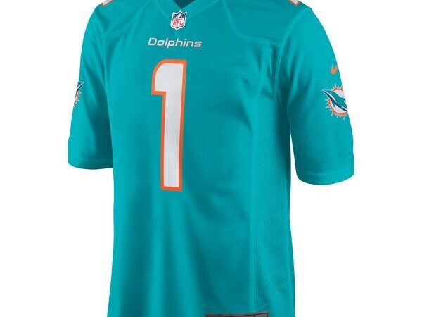 Number 1 Dad Miami Dolphins Nike Game Jersey – Aqua