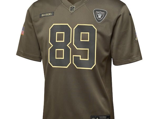 Brock Bowers Las Vegas Raiders Nike Youth 2025 Salute to Service Game Jersey – Olive