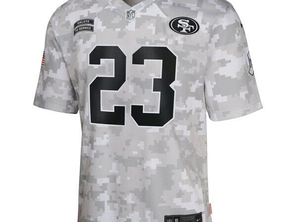 Christian McCaffrey San Francisco 49ers Nike Youth 2024 Salute to Service Game Jersey – Arctic Camo