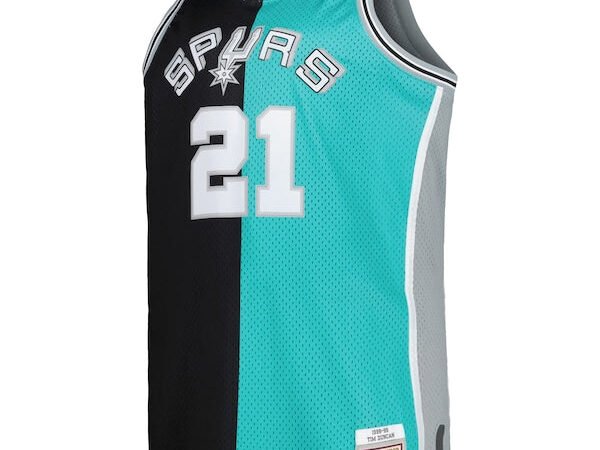 Tim Duncan San Antonio Spurs Hardwood Classics 1998/99 Split Swingman Jersey – Black/Teal