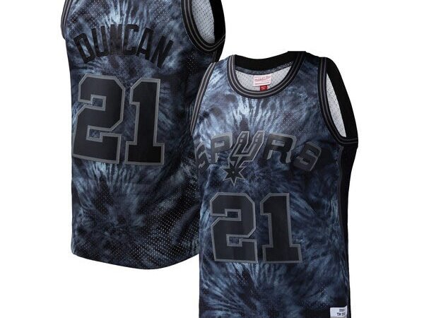 Tim Duncan San Antonio Spurs Hardwood Classics 1998/99 Tie-Dye Swingman Jersey – Black