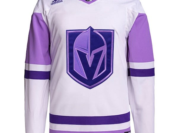 Vegas Golden Knights adidas Hockey Fights Cancer Primegreen Authentic Custom Jersey – White/Purple