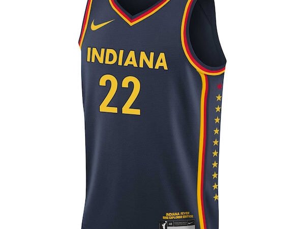 Embroidered team logo at bottom neck