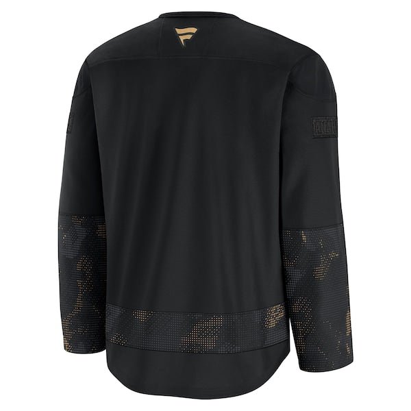 Show off your Anaheim Ducks pride with this 2024 Military Appreciation Practice Jersey from Fantics. This jersey is crafted with FanTex, a performance midweight fabric that provides optimal drape and range of motion, ensuring both comfort and flexibility. The rounded droptail hem with side vents allows for a full range of motion, while the moisture-wicking FanShield technology keeps you cool, dry, and comfortable whether you’re cheering on the Anaheim Ducks from the stands or hitting the ice yourself.
