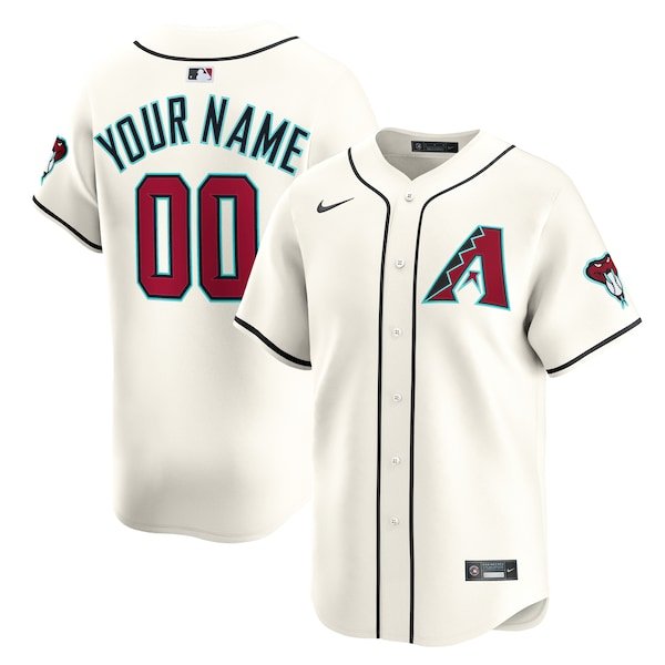 We want fans to celebrate their fandom by customizing and personalizing certain products. For these customizable products, including jerseys, we invite customers to tell us how they would like their preferred name or other text to appear by typing that text into the field indicated. However, just because a customer is able to type proposed customization text into the field and is able to complete the order through the website, not all proposed customization text will be accepted. Please note, Fantics may reject and cancel any customization order for any reason, including for messages that are deemed offensive or inappropriate. Get your young fan ready for the next game with this Arizona Diamondbacks Home Custom Limited Jersey from Nike. The innovative Vapor Premier chassis allows for more flexible movement and teams up with Dri-FIT technology to deliver exceptional sweat-wicking power. This official jersey is inspired by the on-field uniforms worn by your kiddo’s favorite Arizona Diamondbacks players, and features recycled trims and twill details for an authentic look.