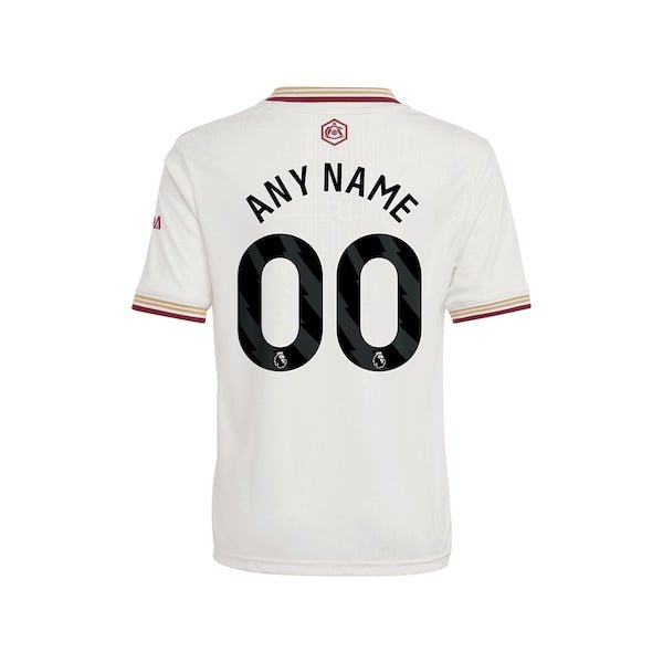 We want fans to celebrate their fandom by customizing and personalizing certain products. For these customizable products, including jerseys, we invite customers to tell us how they would like their preferred name or other text to appear by typing that text into the field indicated. However, just because a customer is able to type proposed customization text into the field and is able to complete the order through the website, not all proposed customization text will be accepted. Please note, Fantics may reject and cancel any customization order for any reason, including for messages that are deemed offensive or inappropriate. Let your young Gooner embody the spirit of the Emirates with this Arsenal 2025/26 Third Replica Custom Jersey. This jersey mirrors the style of the Arsenal squad, featuring the iconic sewn-on embroidered team crest on the left chest. AEROREADY® technology absorbs moisture and makes you feel dry, ensuring comfort on and off the pitch, while the ventilated mesh panel inserts offer added breathability. The backneck taping and tagless collar make for a comfortable fit as your little one cheers on the Gunners this season.