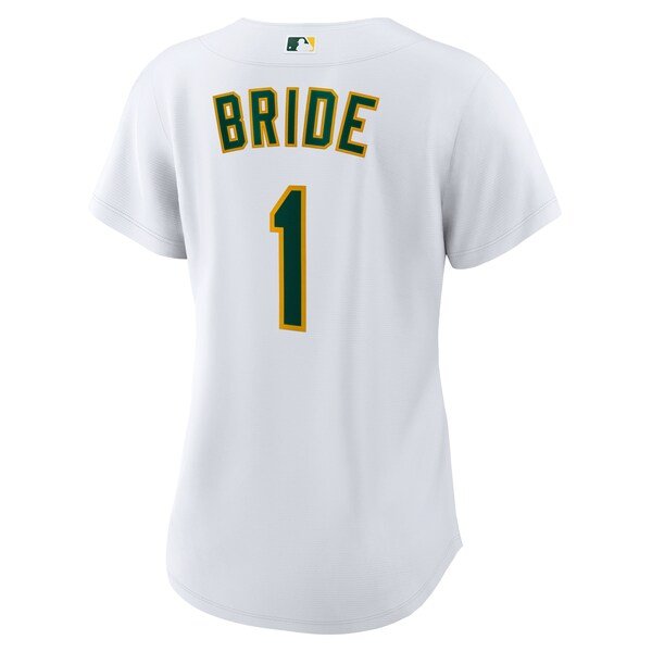 Cheer on your favorite MLB team in style with this Athletics #1 Bride Home Replica Jersey from Nike. This officially licensed jersey boasts a classic button-down design and features crisp Athletics graphics that let everyone know who you’re rooting for. Thanks to its lightweight, breathable construction, you’ll stay cool and comfortable whether you’re at the ballpark or watching from home.