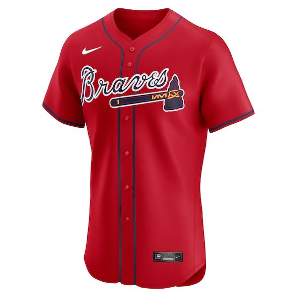 Crafted with an athletic fit and premium twill details, this Elite Jersey features the official on-field design of the Atlanta Braves for an authentic piece of gear. Nike combined the Vapor Premier chassis and Dri-FIT technology to provide a lightweight feel with exceptional sweat-wicking power. Stretch mesh fabric delivers breathable, flexible comfort that ensures you stay comfortable all season long in this Atlanta Braves jersey.