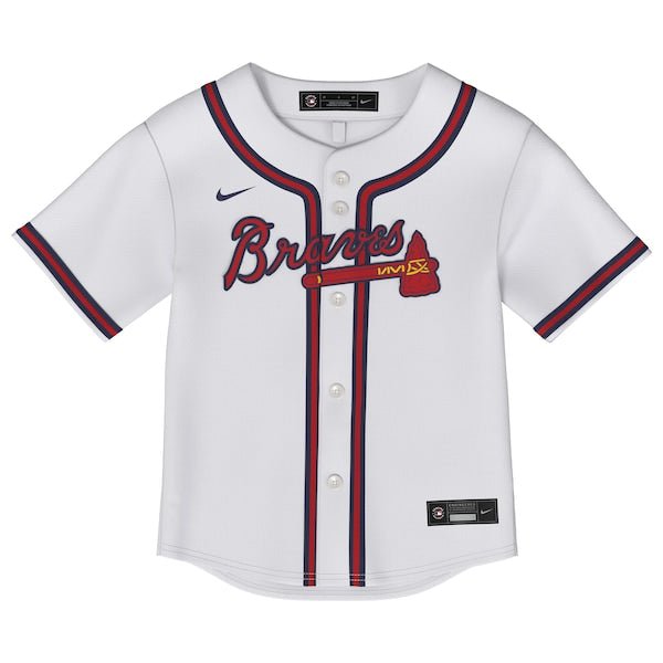 Get your young Atlanta Braves fan ready to cheer on their favorite team with this Home Replica Jersey. This replica jersey is made from breathable 100% polyester, ensuring your little one stays cool and comfy at the ballpark or in your backyard. With its classic design and crisp colors, this officially licensed MLB jersey is the perfect way to showcase your young fan’s Atlanta Braves pride.