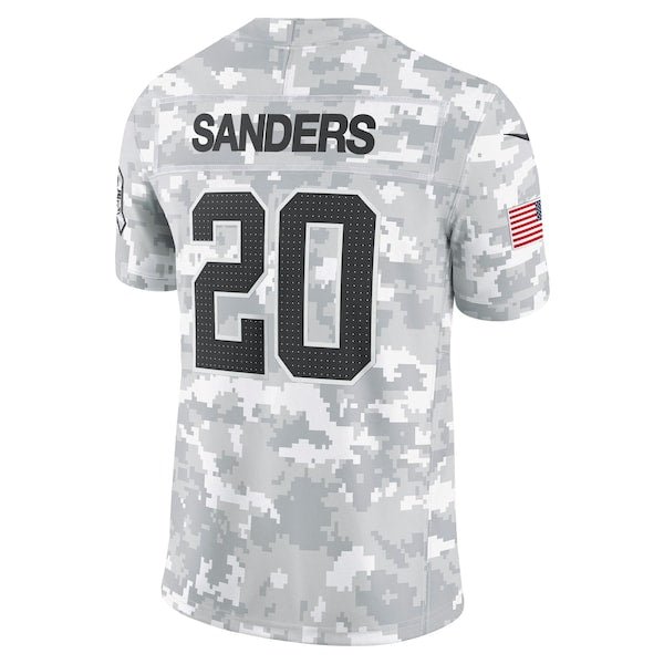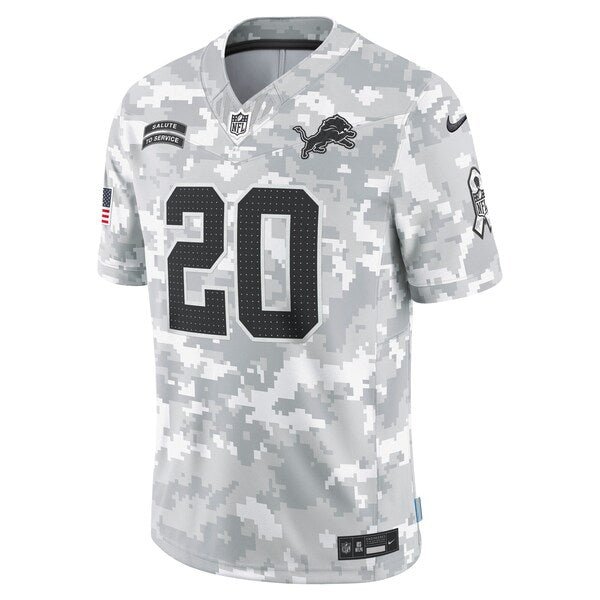 This Barry Sanders 2024 Salute to Service Retired Player Limited Jersey delivers an authentic touch on game day with premium twill team appliques and a tribute to those who serve their country. Its special design is dedicated to the NFL’s charitable initiative and features an allover arctic camo pattern and military-inspired details. Double pique fabric and sweat-wicking Dri-FIT technology provide consistent comfort as you represent a legendary Detroit Lions player and active or retired service members. The NFL does not profit from the sale of Salute to Service products. Charitable contributions are awarded by the NFL Foundation to the NFL’s military partners. For more information, please visit www.NFL.com/Salute.