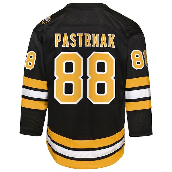 Get your young fan outfitted like their favorite Boston Bruins players with this David Pastrnak Home Replica Player Jersey from Outerstuff. This NHL jersey is crafted from durable polyester to withstand the excitement of every game. Its classic design features Boston Bruins graphics and sewn-on stripes at the elbows and hem to add a touch of hockey authenticity. With its comfortable fit and eye-catching details, this jersey will have your kiddo feeling like part of the team on game day.