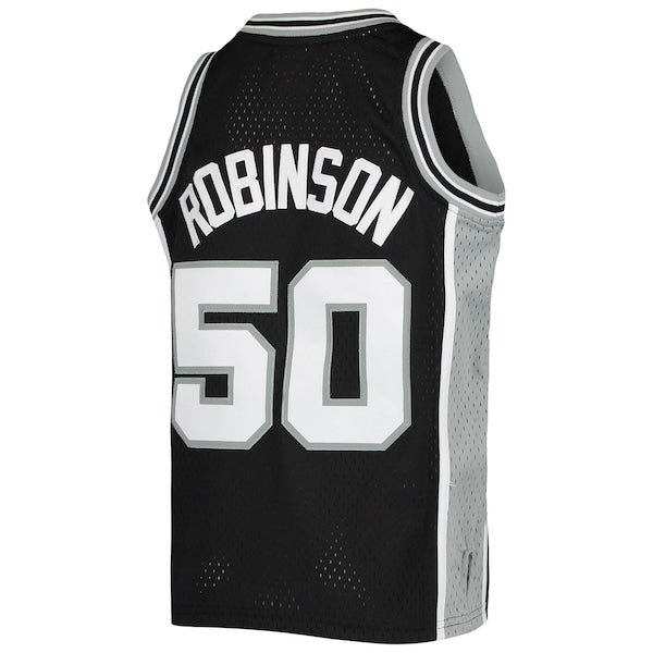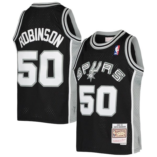 Your kiddo may be a newcomer to ranks of the San Antonio Spurs faithful, but they still take the time to honor one of the best to wear the team’s uniform. Before the next game tips off, help your youngster pay homage the franchise’s storied past while also recognizing one of its all-time brightest stars with this David Robinson Hardwood Classics Swingman jersey from M & N! Its throwback-inspired design and player-specific graphics are sure to remind fellow fans of all their favorite San Antonio Spurs victories, both past and present.