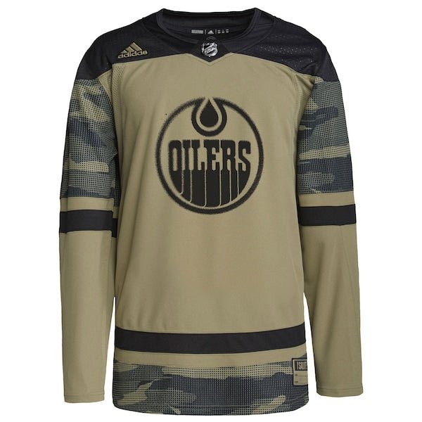 This Edmonton Oilers Logo Military Appreciation Team Authentic Practice Jersey by adidas is a unique addition to your collection. It will quickly become your go-to for cheering on your favorite team. Featuring bold Edmonton Oilers graphics and camouflage details, there will be no question that you are the biggest fan around.
