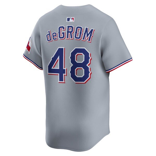 Give your Texas Rangers look an upgrade with this Jacob deGrom Road Limited Player Jersey by Nike. Designed to mirror the on-field jersey, its double-knit mesh fabric provides a breathable and comfortable feel. The Vapor Premier chassis allows for a full range of motion and teams up with Dri-FIT ADV technology to keep you cool and dry, whether you’re in the stands or out on the town.