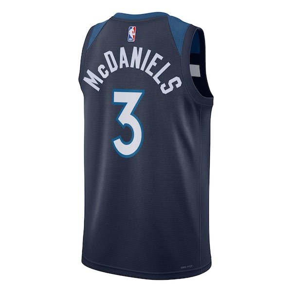 Take your Minnesota Timberwolves fandom straight to center court in this Jaden McDaniels Swingman Jersey – Icon Edition from Nike. This jersey embodies the electrifying style of the power forward for his clutch performances at both ends of the court. The Icon Edition showcases the team’s colorway, representing their unwavering spirit and dedication to excellence. Crafted with Nike’s Dri-FIT technology, this jersey keeps you cool and comfortable whether you’re cheering from the stands or dominating on the hardwood just like #3.