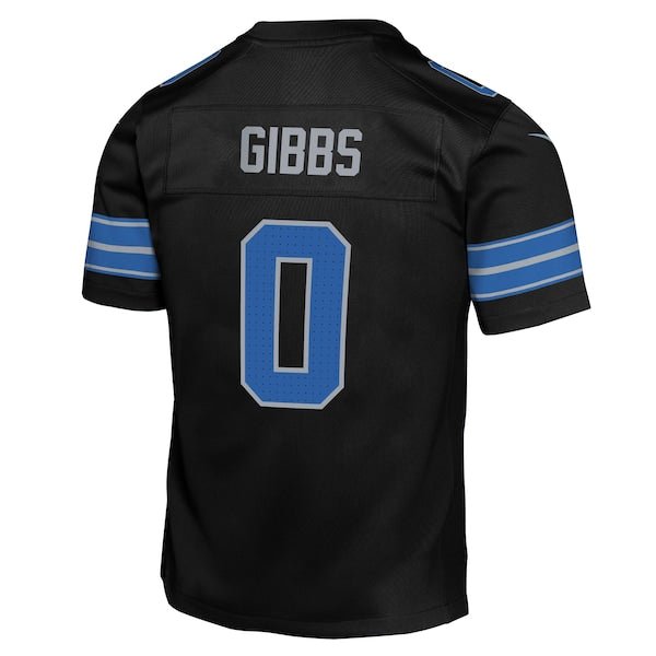 Get your young fan ready to cheer on the Detroit Lions with this Jahmyr Gibbs Alternate Game Jersey from Nike. This jersey is built with breathable mesh side panels that deliver enhanced ventilation to keep your young fan cool and comfortable. The stitched NFL Shield at the collar and satin woven jock tag offer iconic details for an authentic look perfect for a Detroit Lions game day.