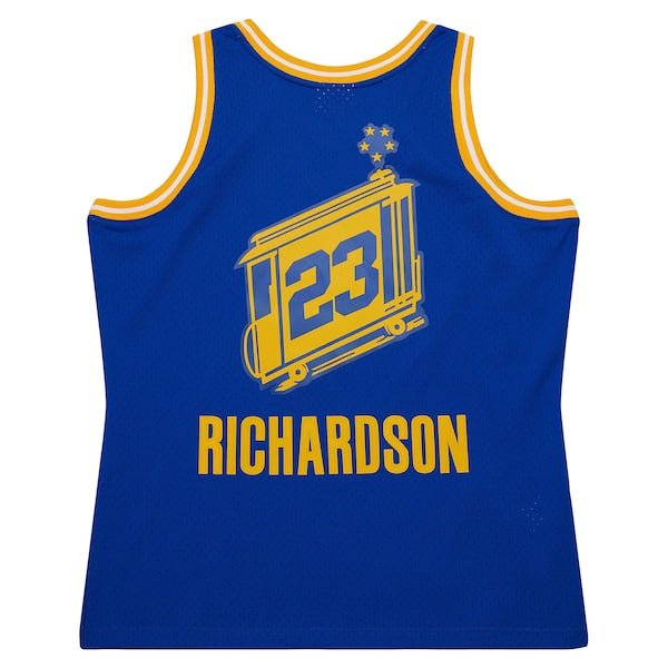 Before the next tipoff, pay homage to one of the Golden State Warriors’ all-time greats with this Jason Richardson 2004/05 Hardwood Classics Swingman jersey from M & N. This jersey features tackle twill graphics that pay homage to Jason Richardson’s time with the Golden State Warriors. With its mesh fabric and rib-knit collar and arm openings, this jersey offers a comfortable and breathable fit that’s perfect for all-day wear.