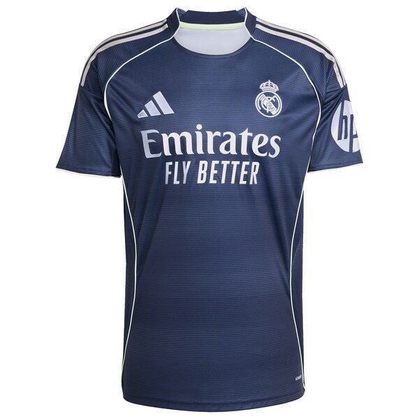 Show your support for Jude Bellingham as he dominates the pitch with this Los Merengues 2025/26 Away Replica Player Jersey from adidas. Its AEROREADY® technology absorbs moisture and keeps you feeling dry, whether you’re on the pitch or cheering from the stands. The embroidered team crest and player graphics leave no doubt about your eagerness to see Jude Bellingham and Los Merengues come out victorious come matchday.