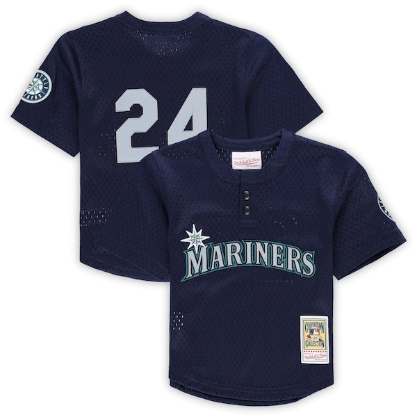 Your young fan can start game day off right in this Seattle Mariners Ken Griffey Jr. Cooperstown Collection Mesh Batting Practice jersey from M & N. This throwback piece features vintage Seattle Mariners graphics on the front and back, which will help your kiddo stand out in the crowd. Its mesh fabric makes it great for either relaxing or being out and about.