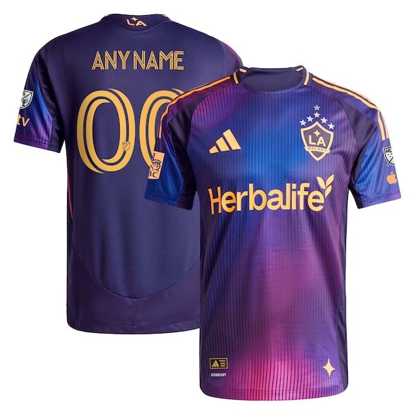 We want fans to celebrate their fandom by customizing and personalizing certain products. For these customizable products, including jerseys, we invite customers to tell us how they would like their preferred name or other text to appear by typing that text into the field indicated. However, just because a customer is able to type proposed customization text into the field and is able to complete the order through the website, not all proposed customization text will be accepted. Please note, Fantics may reject and cancel any customization order for any reason, including for messages that are deemed offensive or inappropriate. Look to the horizon with this 2025 RIZON Authentic Custom Jersey from adidas. A mixture of “rise” and “horizon”, this jersey is inspired by LA’s magical skyline and relentless determination to rise above adversity. With its creative blend of purples, blues and oranges to mimic the colorful Los Angeles horizon and AEROREADY technology to keep you cool, you’ll be ready to represent the LA Galaxy in style and comfort this season.