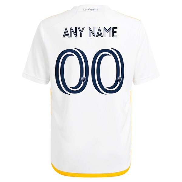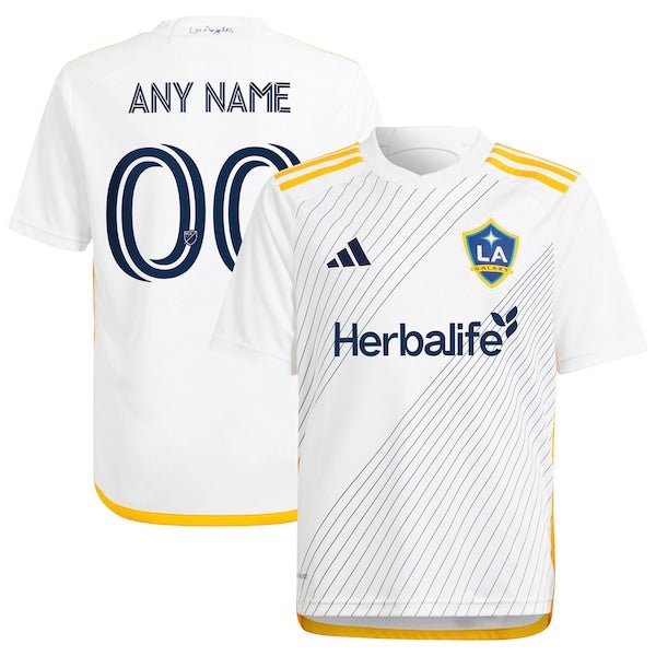 We want fans to celebrate their fandom by customizing and personalizing certain products. For these customizable products, including jerseys, we invite customers to tell us how they would like their preferred name or other text to appear by typing that text into the field indicated. However, just because a customer is able to type proposed customization text into the field and is able to complete the order through the website, not all proposed customization text will be accepted. Please note, Fanatics may reject and cancel any customization order for any reason, including for messages that are deemed offensive or inappropriate. Let your kiddo celebrate the return of the iconic LA Galaxy sash by grabbing them this 2024 Angeleno Kit Replica Custom Jersey. Back by popular demand, the sash is reimagined in a modern take with a play on negative space and the lines surrounding the sash represent speed, forward momentum, and revolution. The Quasar, which is on the front of the jersey, is the club’s signature mark and beacon, unifying all voices and Angelinos as one. This adidas gear utilizes AEROREADY technology and ventilated mesh panels that work together to keep your young fan comfortable on and off the pitch.