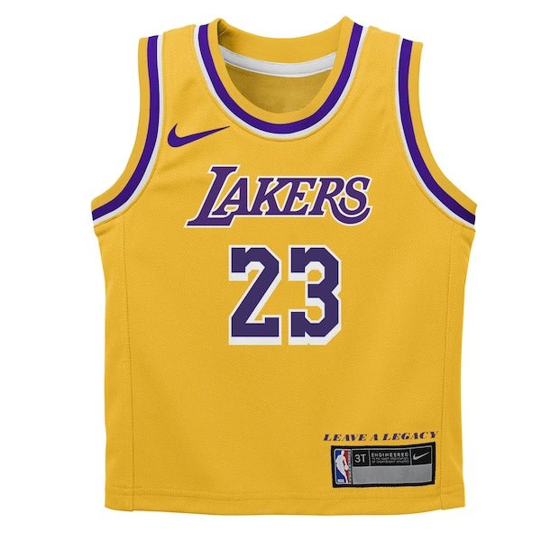 Help your young fan capture their team’s distinct identity in a distinct way by grabbing this LeBron James Los Angeles Lakers Swingman Icon Edition jersey. Directly inspired by Nike’s Authentic, on-court jersey, it features classic trims and graphics along with Nike’s Dri-FIT technology for added comfort. Next time the Los Angeles Lakers take the court, this jersey lets everyone know their budding fandom is on the cutting edge.