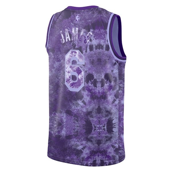 Step out in bold Los Angeles Lakers fashion with this LeBron James Select Series jersey. This Nike crafted jersey features a unique tie-dye take on the team’s uniform and moisture-wicking Dri-FIT fabric for extra comfort. Finished with LeBron James’s facsimile signature above the jock tag, this eye-catching jersey is a must-have for any Los Angeles Lakers fan.