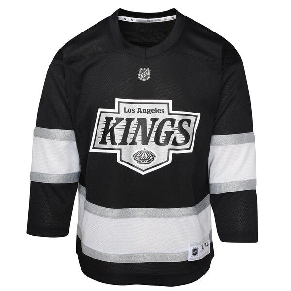 Ensure your young fan is outfitted properly for the next Los Angeles Kings game by grabbing them this Home Replica Jersey. The jersey has striking graphics that will have them ready to cheer their team to victory. Its quality construction will keep this special Los Angeles Kings gear game day ready for years to come, so your young fan will never have to think twice about what to wear when the puck drops.