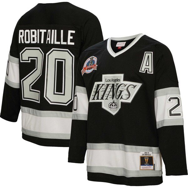 You can feel like you’re hitting the ice with the greats by putting on this Luc Robitaille Los Angeles Kings 1992/93 Blue Line Player Jersey from M & N. This Alternate Captain Patch jersey features authentic Los Angeles Kings colors and graphics, exactly like what Luc Robitaille wore during his time with the team.