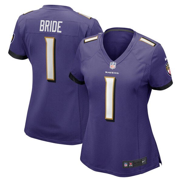 Commemorate the happiest day of your life with Baltimore Ravens flair in this Number 1 Bride Game jersey from Nike. Its heat-sealed graphics provide a kickoff-ready aesthetic while also offering a comfortable, lightweight feel. Designed for everyday movement, this jersey has a tailored fit and features mesh side panels for added ventilation as you celebrate every big play the Baltimore Ravens make this season. I now pronounce you ready for game day.