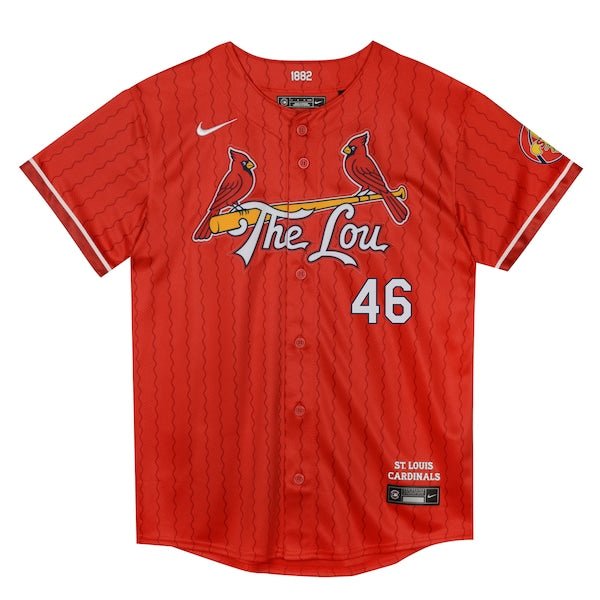 Show everyone how much The Lou means to your young fan by grabbing them this Paul Goldschmidt St. Louis Cardinals 2024 City Connect Limited Player Jersey from Nike. The fleur-de-lis and Gateway Arch logo featured on the design represents the city flag of St. Louis, while the colors serve as a tribute to the team’s rich history. The innovative Vapor Premier chassis allows for more flexible movement and teams up with Dri-FIT ADV technology to deliver exceptional sweat-wicking power.