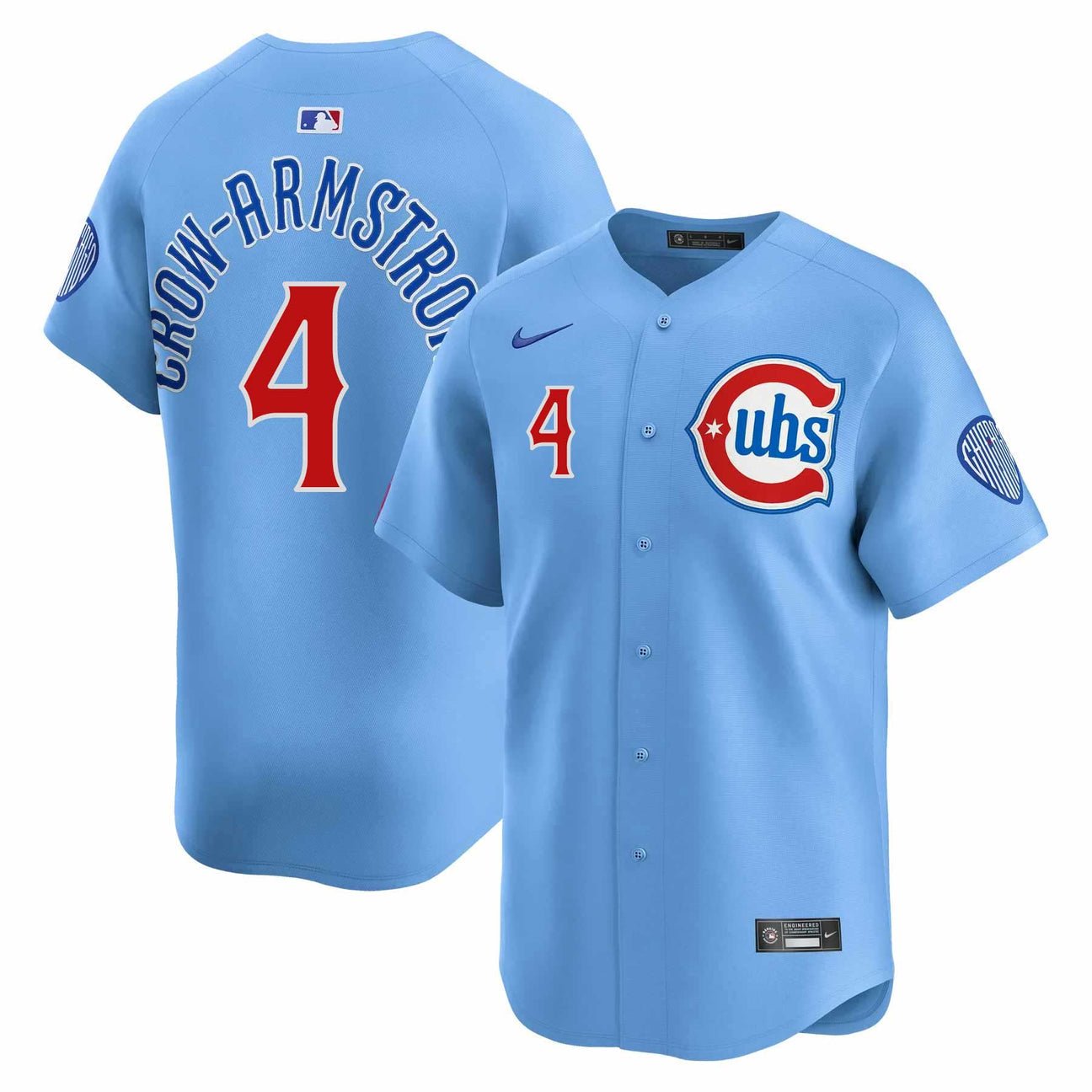 Show your love for your favorite Cubs player in this Chicago Cubs Pete Crow-Armstrong Blues Alternate 2 Nike Vapor Limited Jersey. This genuine merchandise is designed and made by Nike, and is designed to keep you cool and comfortable all day long. It is made from a high performance recycled polyester, with detailed team graphics heat-sealed throughout the jersey, and features Swanson’s name and number on the back. Perfect for true Cubs fans who want to represent their team in a unique and stylish way.